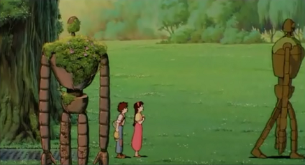 Stādu jums priekšā animētu multfilmu par puiku un meiteni, kuri meklē pēdas leģendārai debesīs lidojošai pilij Laputai, kamēr tiem uz papēžiem skrien pakaļ pirāti un valstsvīri ar armiju. Filma lauž nezinātāju uzskatus, ka japāņu multenes ir pilnas ar grafisku vardarbību un perversiem elementiem, rādot divas stundas garu un neizmirstamu piedzīvojumu par nezināmās pasaules meklēšanu, par ko bērnībā esam vienmēr domājuši.